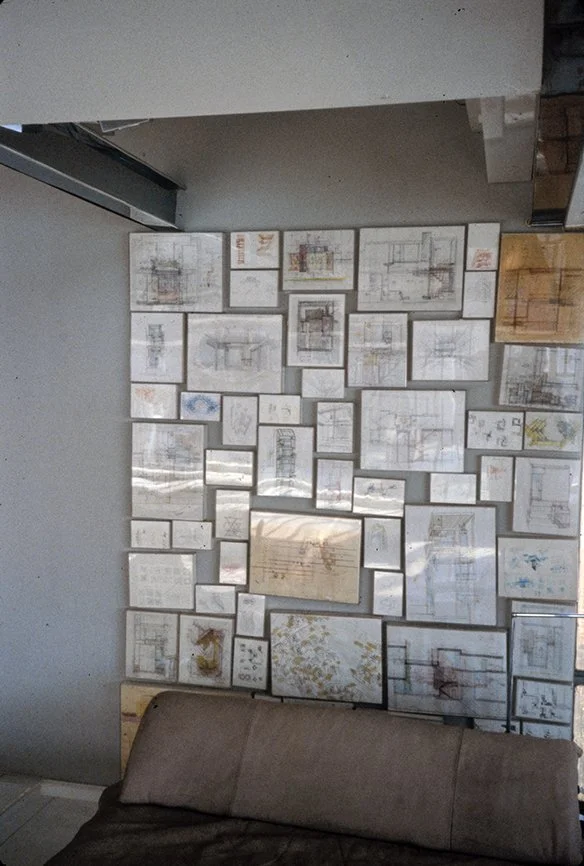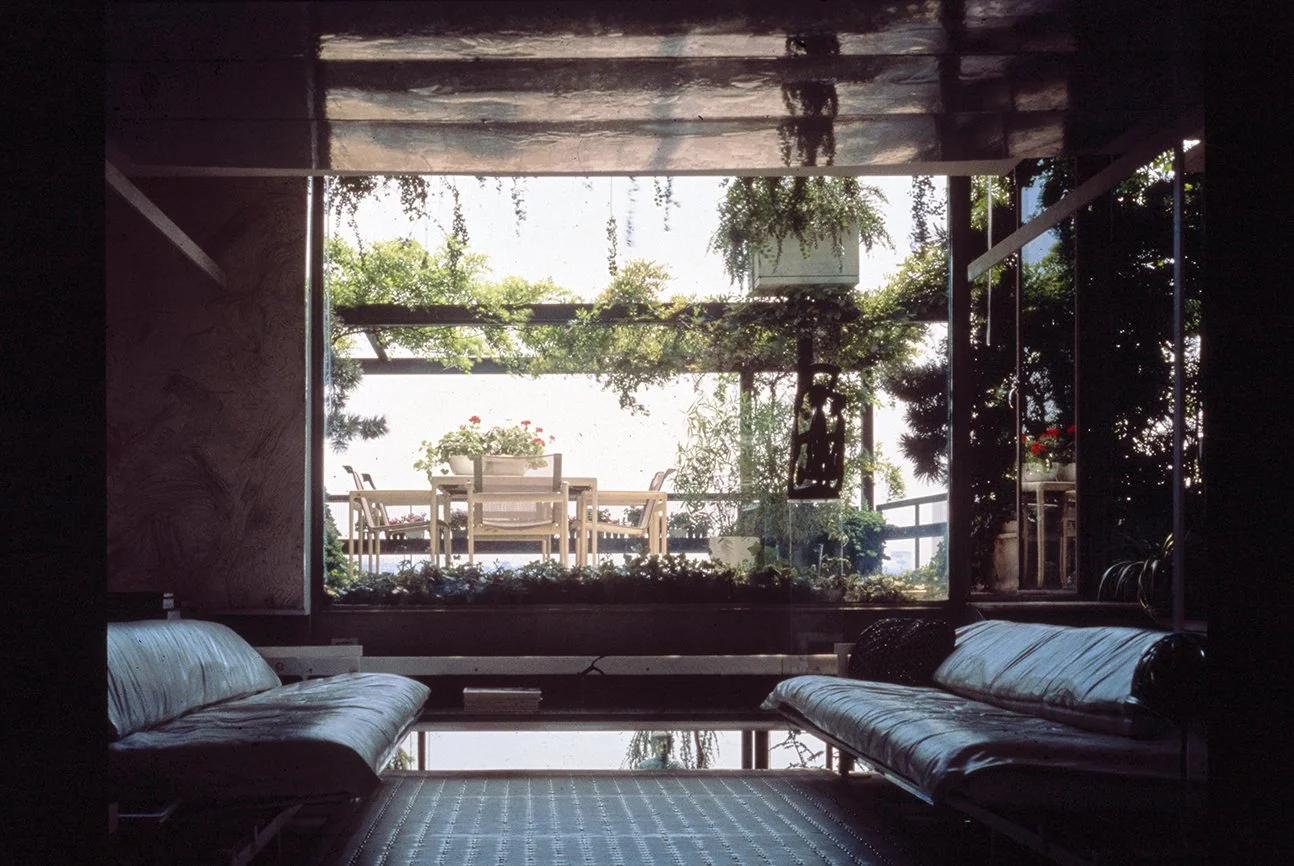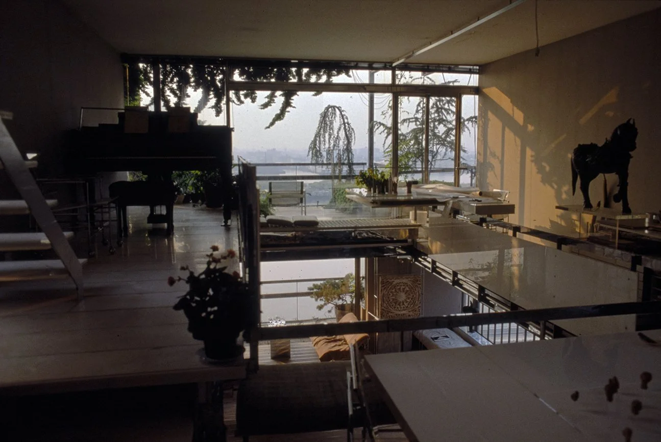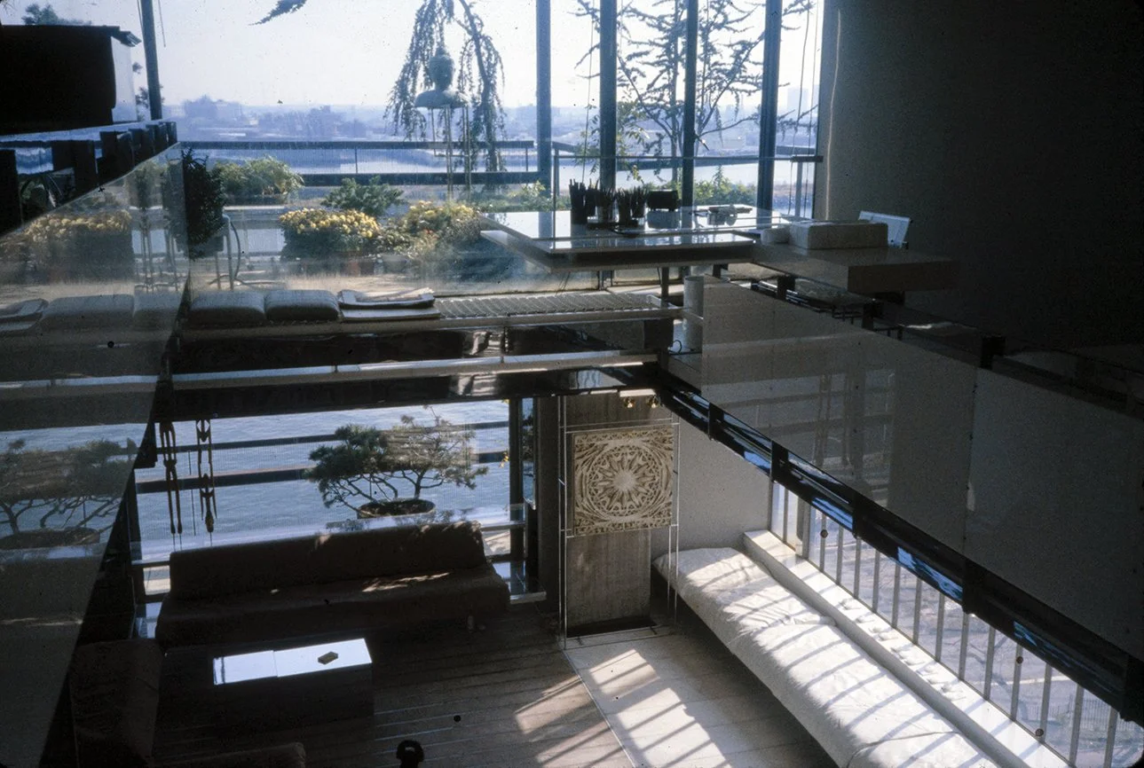 In the December 1978 issue of GA Houses, Rudolph notes by then he had lived in the 800 square foot apartment for “approximately 15 years” and that “three small windows facing the river, Roosevelt Island, and industrial Queens were replaced by a glass wall with doors opening onto a small terrace.” Regarding the original one bedroom unit, “the apartment no longer exists, but it was never more than a series of sketches, or studies, for other projects.”
