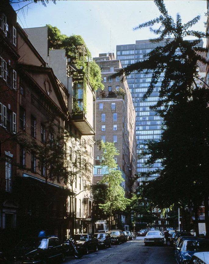 “... even Paul Rudolph’s new attic on his house at No. 23 (1978) plays a role in the total composition. (The Rudolph house, incidentally, has been strongly criticized by its neighbors, who seem to have forgotten that their street is a mix of different styles put together over time. Still, it is a forceful intrusion, and acceptable though the vertical extension is in principle, it is hard not to wish that Mr. Rudolph had not been willing to show a bit more restraint in his overall massing, which cantilevers over the front of the existing townhouse.)”